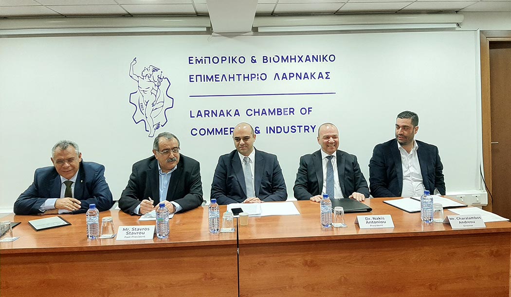Στη συνάντηση συζητήθηκαν πολλά από τα προβλήματα που απασχολούν το Επιμελητήριο Λάρνακας και γενικά την επιχειρηματική κοινότητα όπως το φλέγον θέμα της εργοδότησης υπαλλήλων και κυρίως εργοδότησης εξειδικευμένου προσωπικού από τρίτες χώρες, της ΑΤΑ, τα προβλήματα που δημιουργεί η παράνομη εργασία, το θέμα του κατώτατου μισθού, η  απασχόληση των Φοιτητών από Τρίτες Χώρες,  το θέμα χρόνου του σφραγίσματος των εργατικών συμβολαίων από ξένους εργάτες όπως επίσης και το θέμα που αφορά τους φοιτητές από τρίτες χώρες και το πλαίσιο που διέπει για εργασία στην Κυπριακή αγορά.
